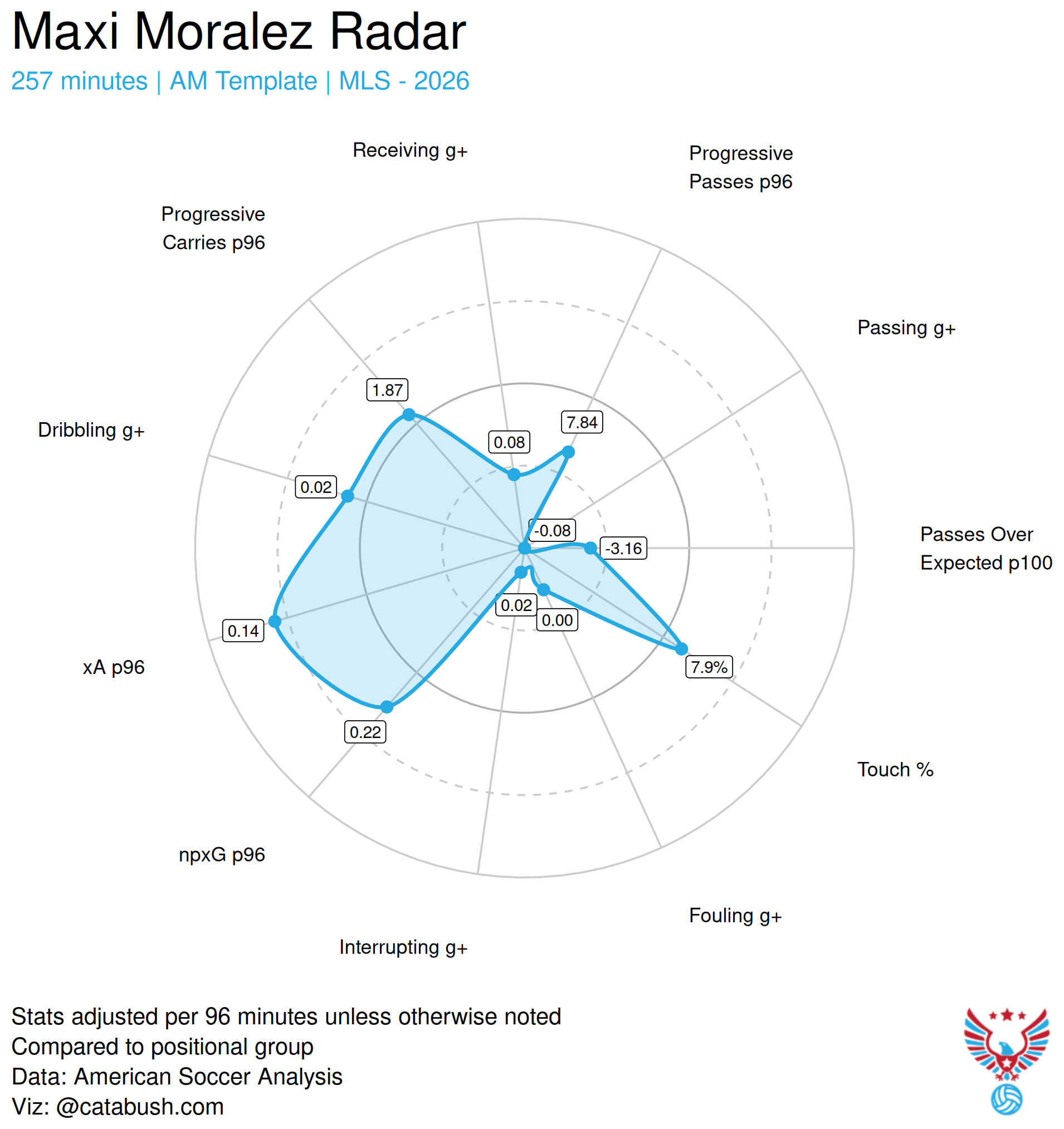 Positive moments that stand out include Paxten Aaronson's collection of the ball deep in midfield sparked the team's attacking gears. I don't think it's far beyond reach to say he's settled to be more of a Cole Bassett replacement than a Djordje Mihailovic replacement. In fact, the #10 position has seemingly been axed and in it's place we are seeing more of Aaronson's shifty and dynamic ability deeper in midfield.