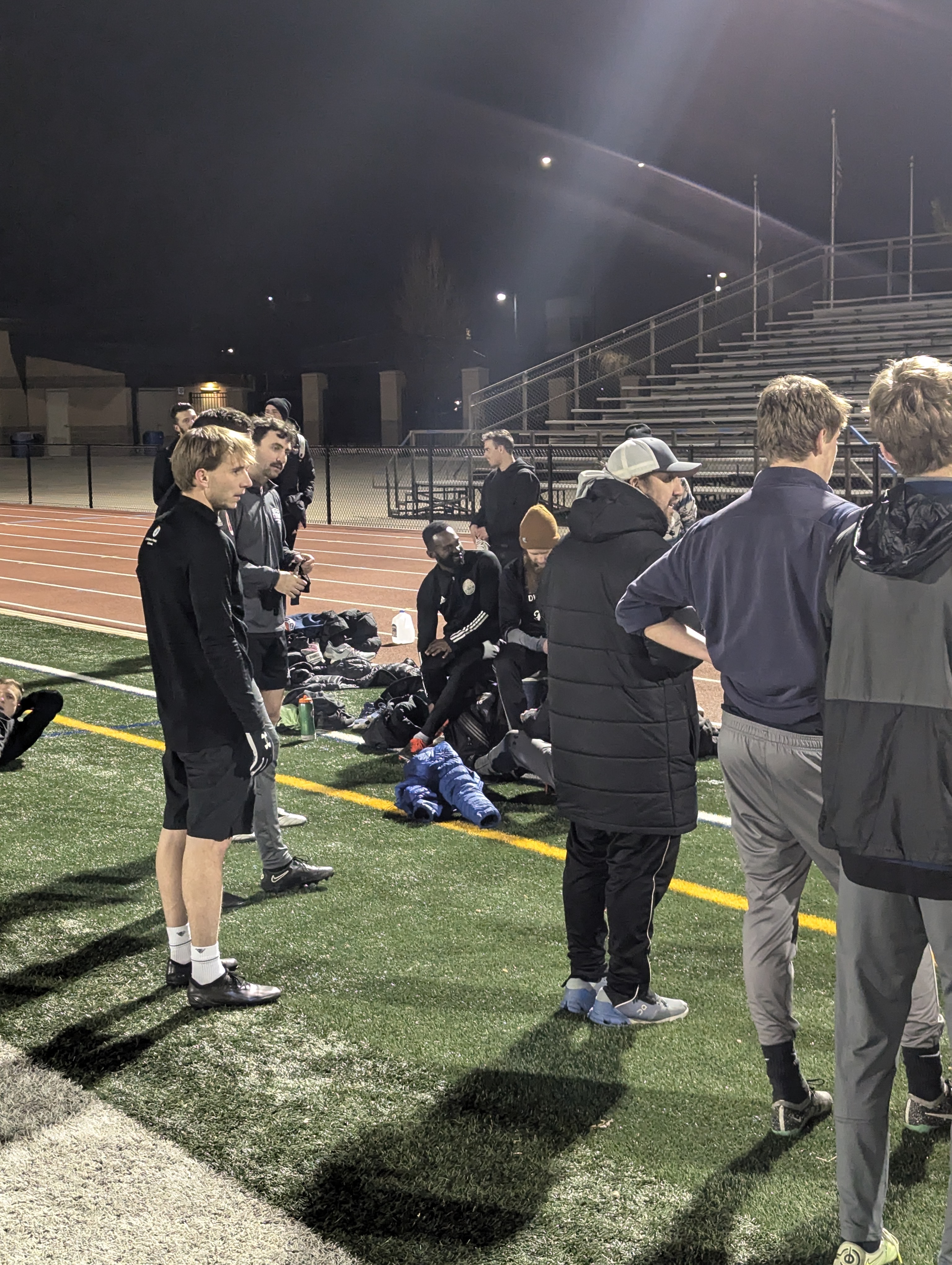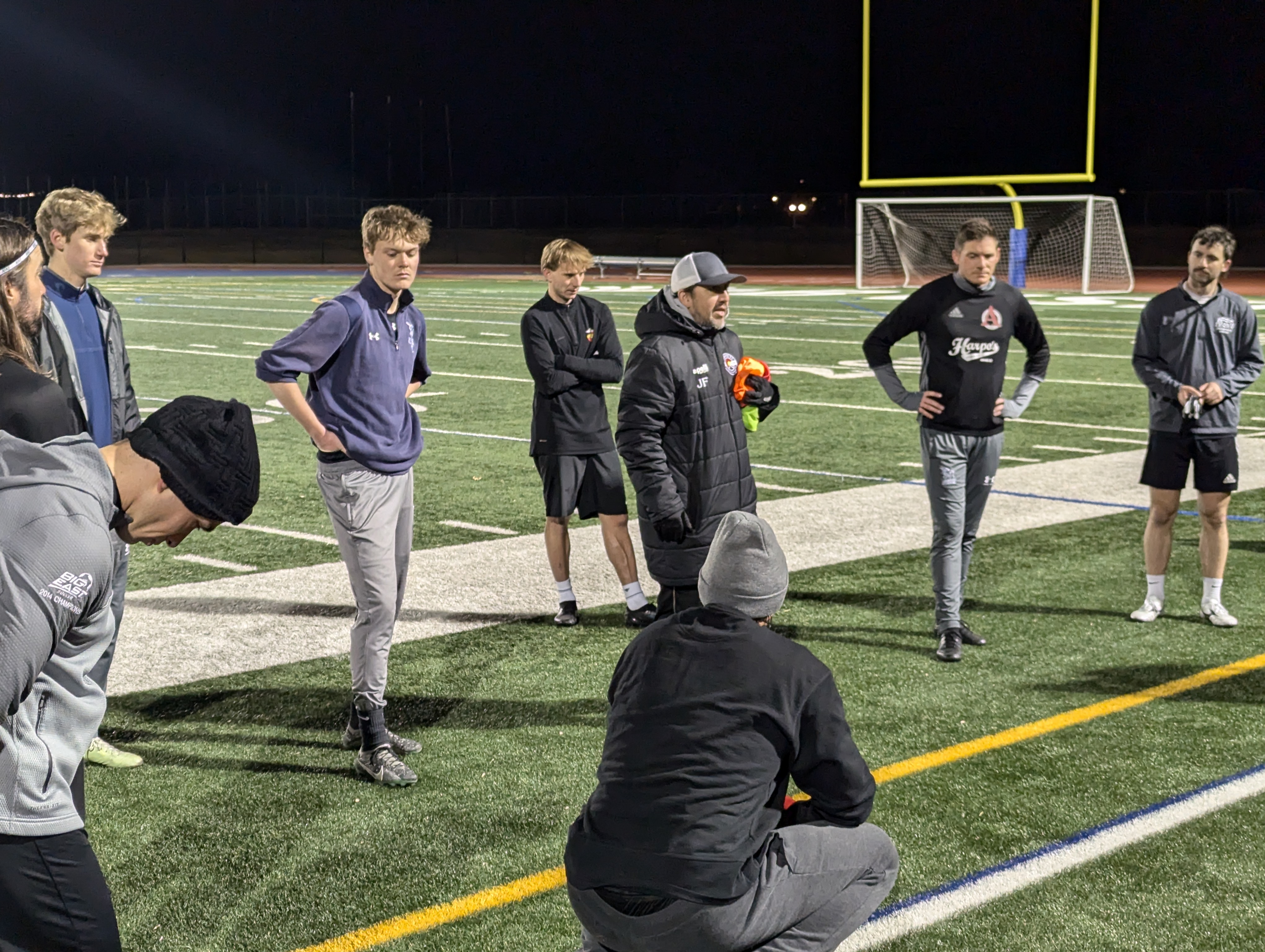 I was fortunate to be in attendance for one of their training sessions at Centaurus High School. Training, as with most teams at this level, happened in the evening to accommodate work schedules. The club embraced the evening’s cold grasp and quickly began match preparation. Kevin Pugh, Harpos’ goalkeeper coach with a robust background in education, was the first face I met. Pugh is a varsity assistant coach for Centaurus HS and had access to Spangenberg Field for training. Once training began, I was able to capture some pictures, videos, sound bytes from Freeston and two players Joel Chavez and Judson McKinney.