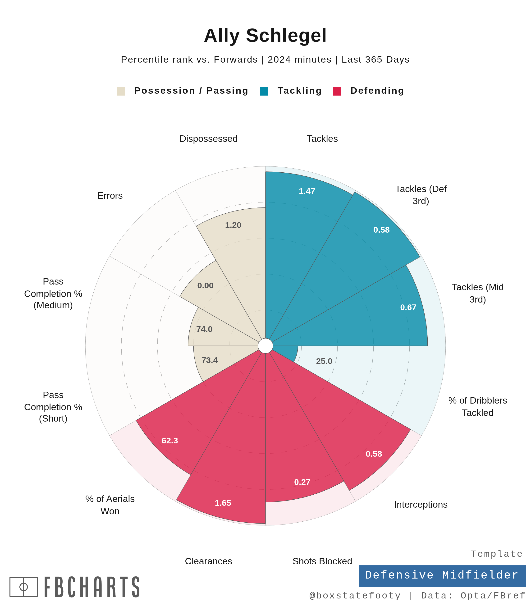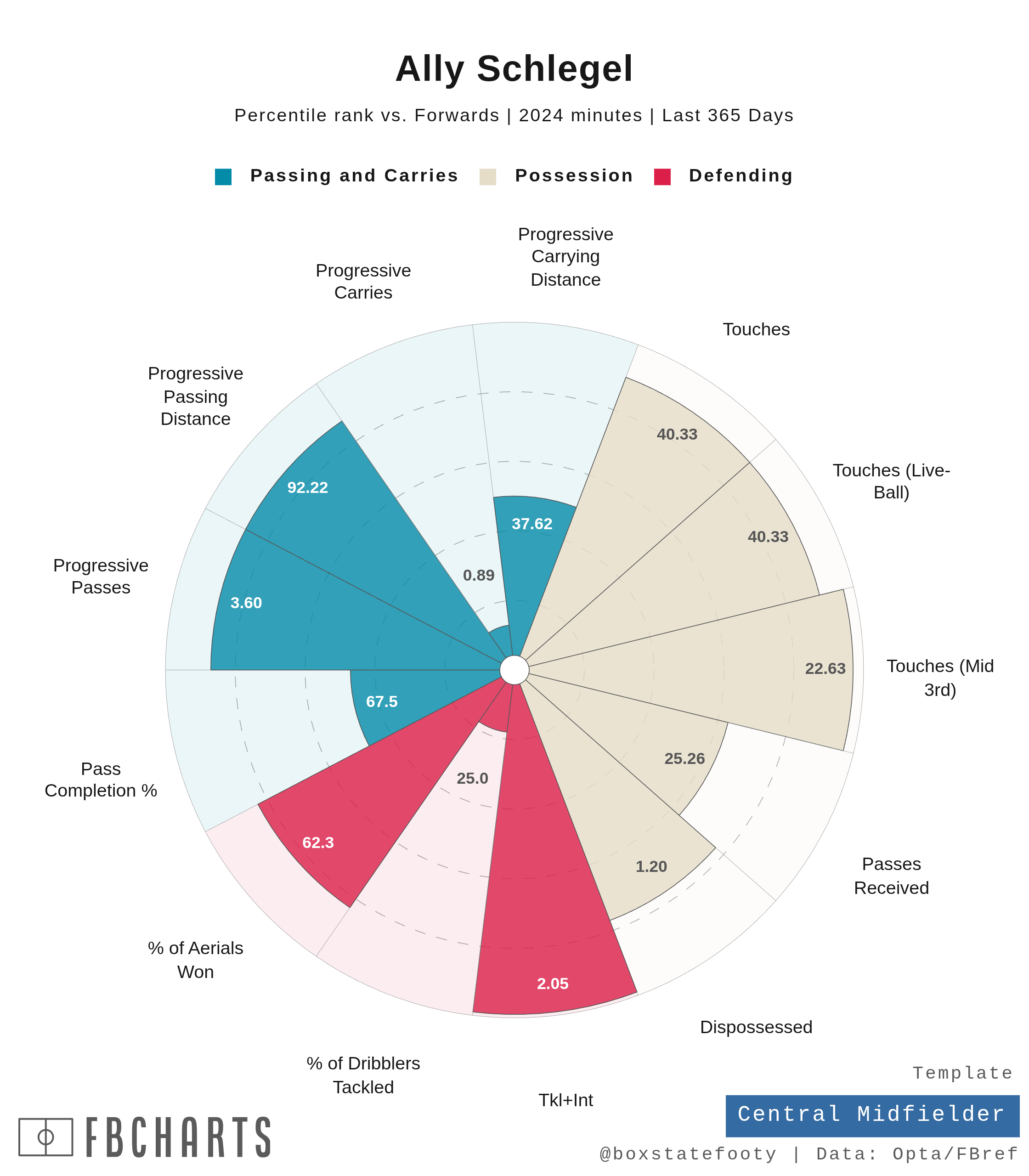 Ally Schlegel offers plenty of productive use as either a central midfielder or a defensive midfielder