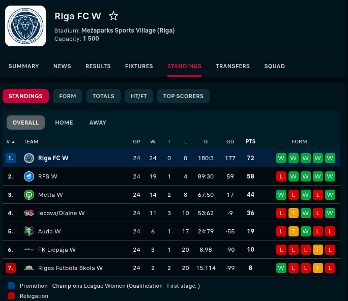 The wrinkle here in this signing is twofold. For one, Riga's dominance in the league is hard to ignore. Secondly, Feller's omission from the Champions League, where there would have been more competitive fixtures for her to play in, leaves a lot of questions. Her time at Riga also lasted only four months from March to June. She would then be omitted from match day squads from July to November 9th; Riga's last match day in the season. She's also notably absent from Riga's roster site.